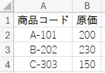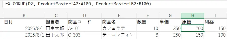 ② XLOOKUP関数で原価取得